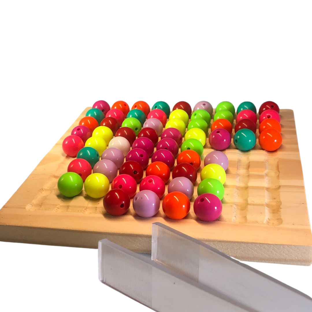 Contém: 81 bolinhas coloridas, 1 colher, 1 pegador, 4 tigelinhas para armazenar as bolinhas e um livrinho