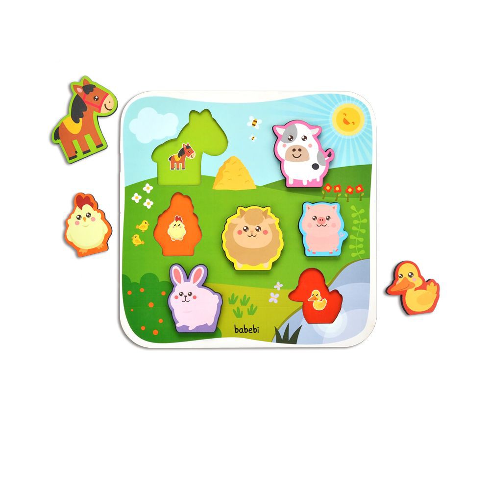 Enquanto descobrem onde encaixar cada animal da fazenda e aprender seus nomes, as crianças se divertem e desenvolvem a motricidade fina e imaginação!Peças grossas, perfeitas para as mãozinhas dos pequenos.